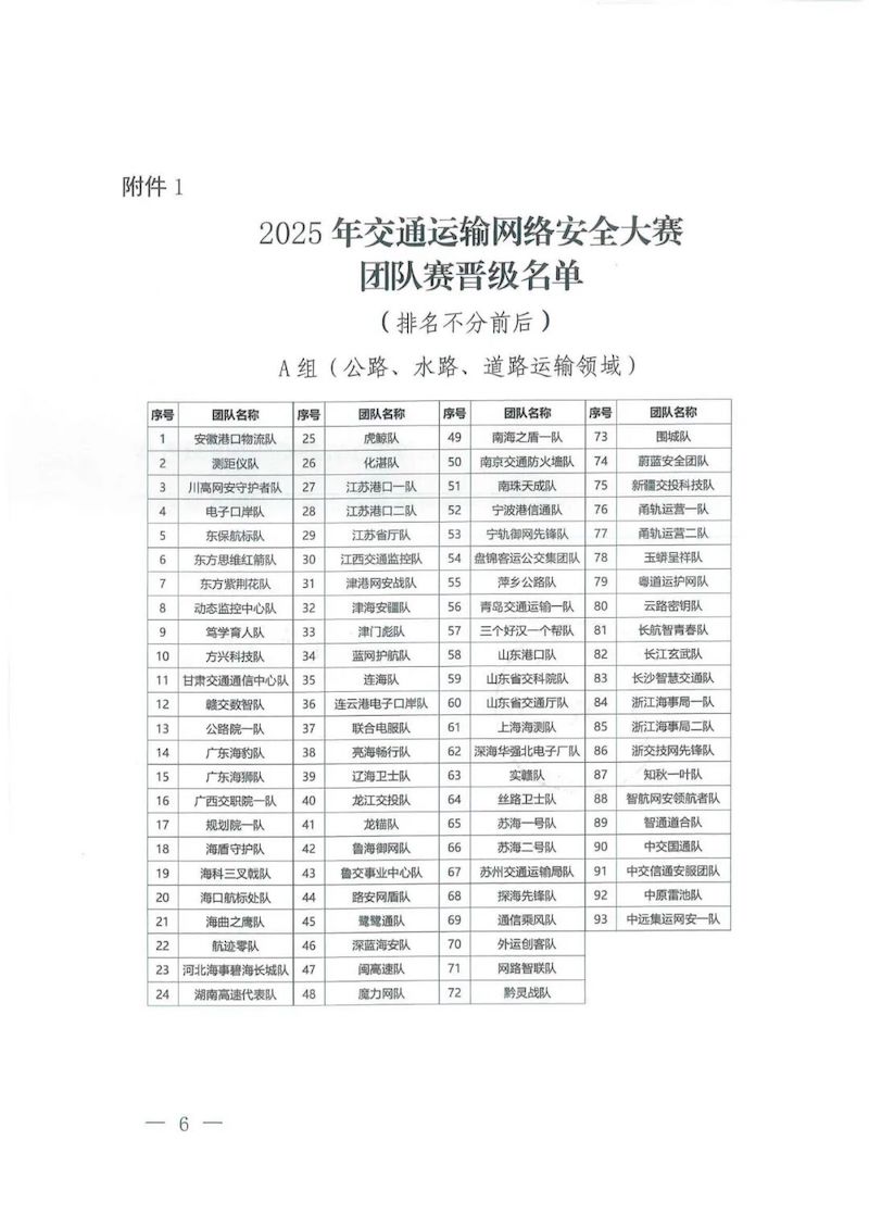 附件:1.2025年交通運輸網(wǎng)絡(luò)安全大賽團隊賽晉級名單