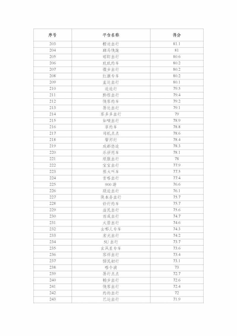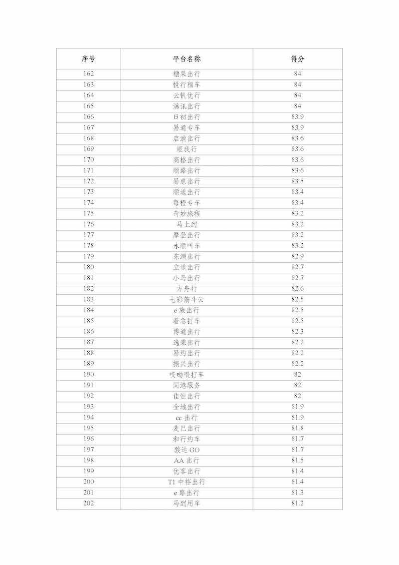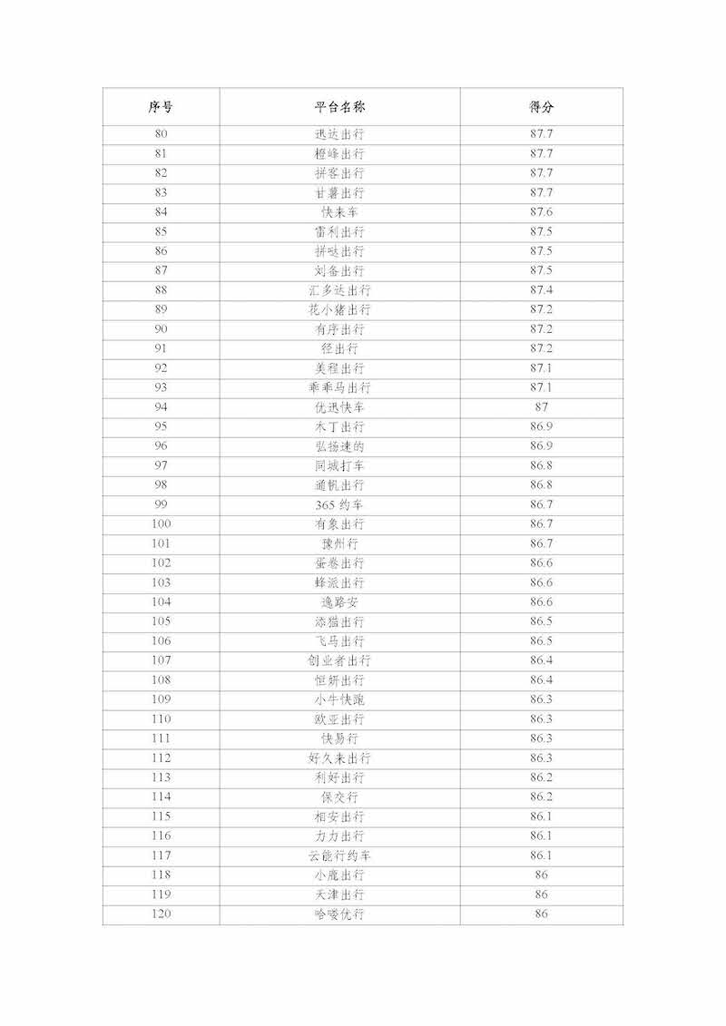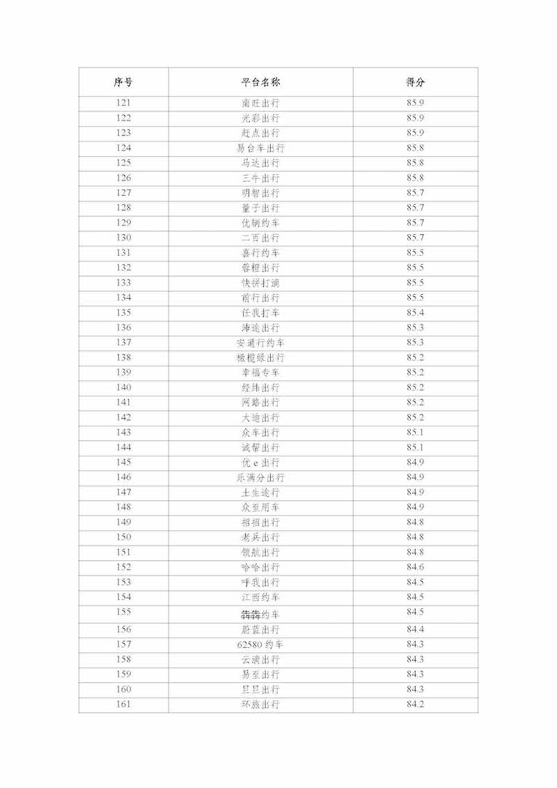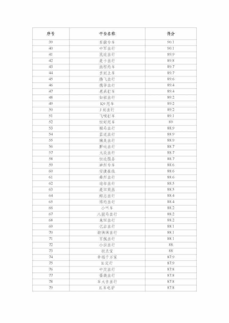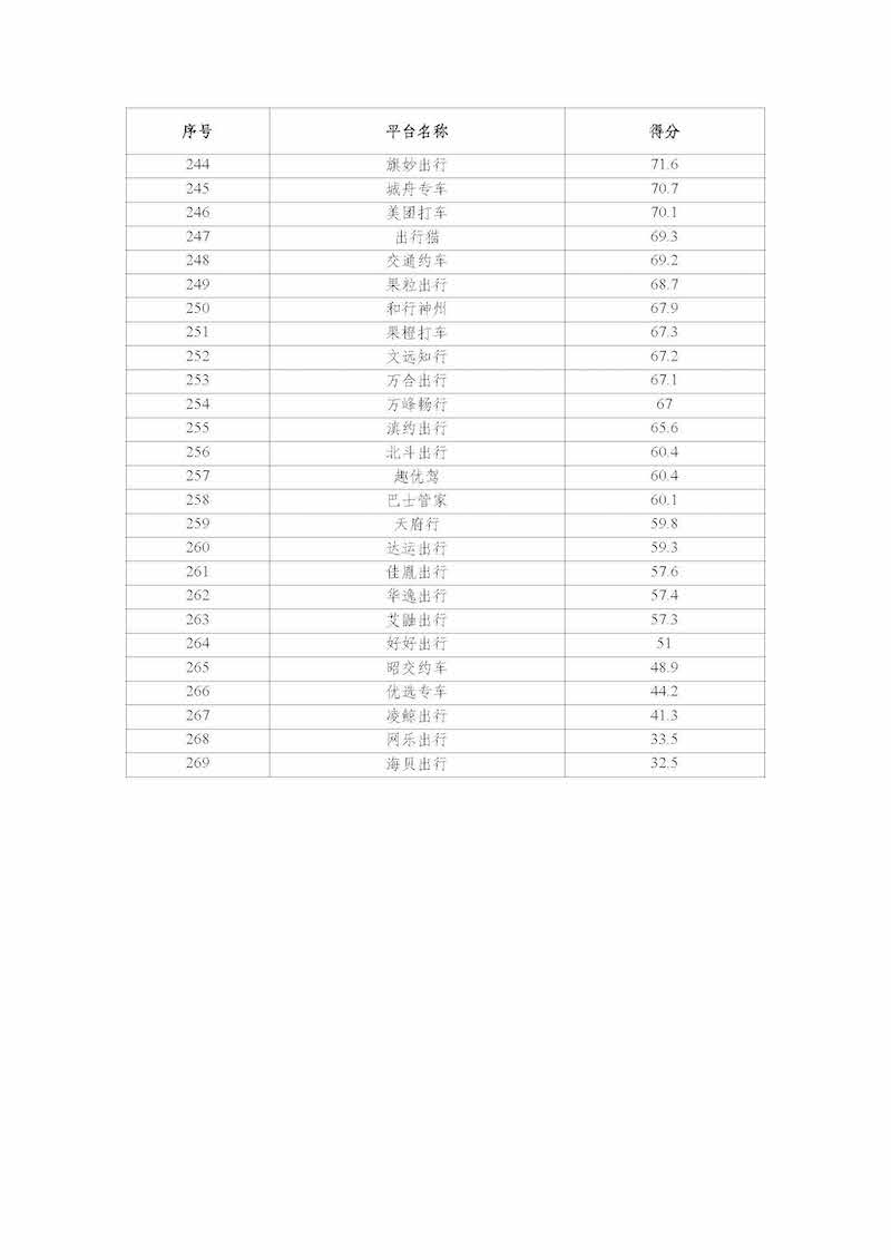 2025年11月,網(wǎng)絡(luò)預(yù)約出租汽車監(jiān)管信息交互平臺共收到269家網(wǎng)約車平臺公司傳輸?shù)臄?shù)據(jù),按數(shù)據(jù)完整性、規(guī)范性、及時性、真實性等指標評分共100分計算,平均得分為87.2分,各網(wǎng)約車平臺公司數(shù)據(jù)傳輸質(zhì)量具體情況附后。
