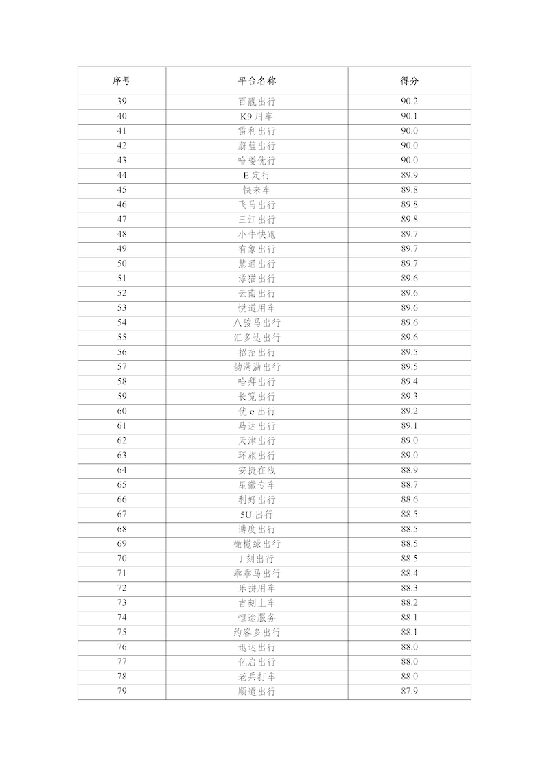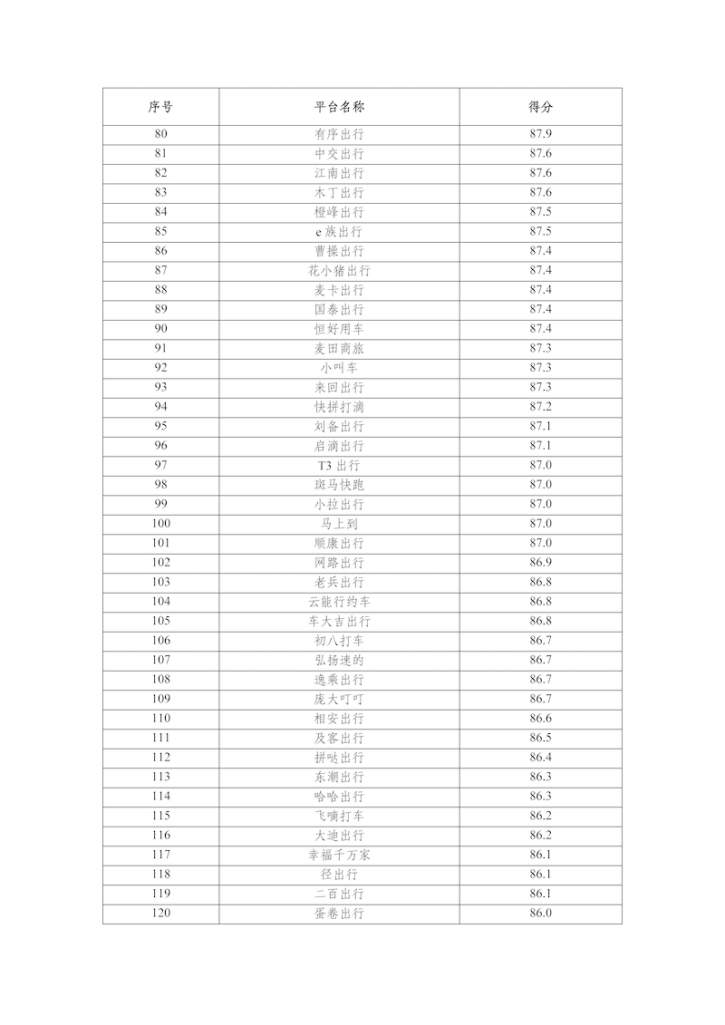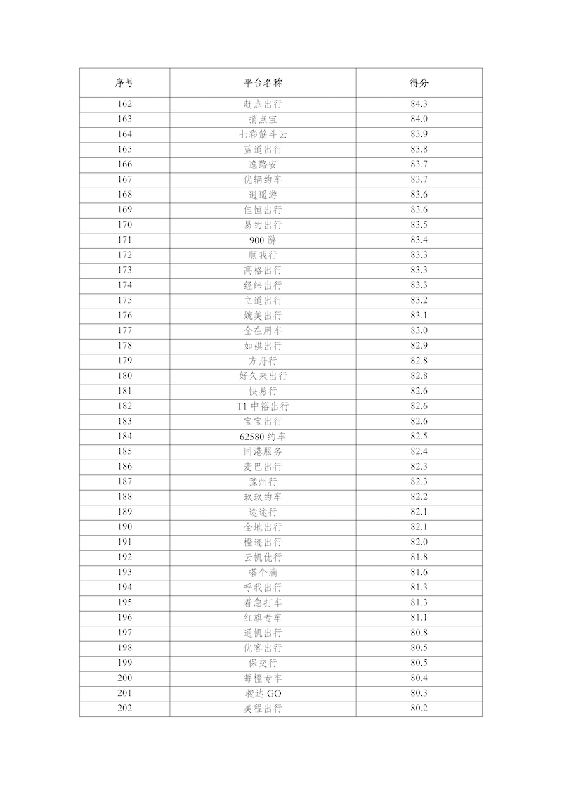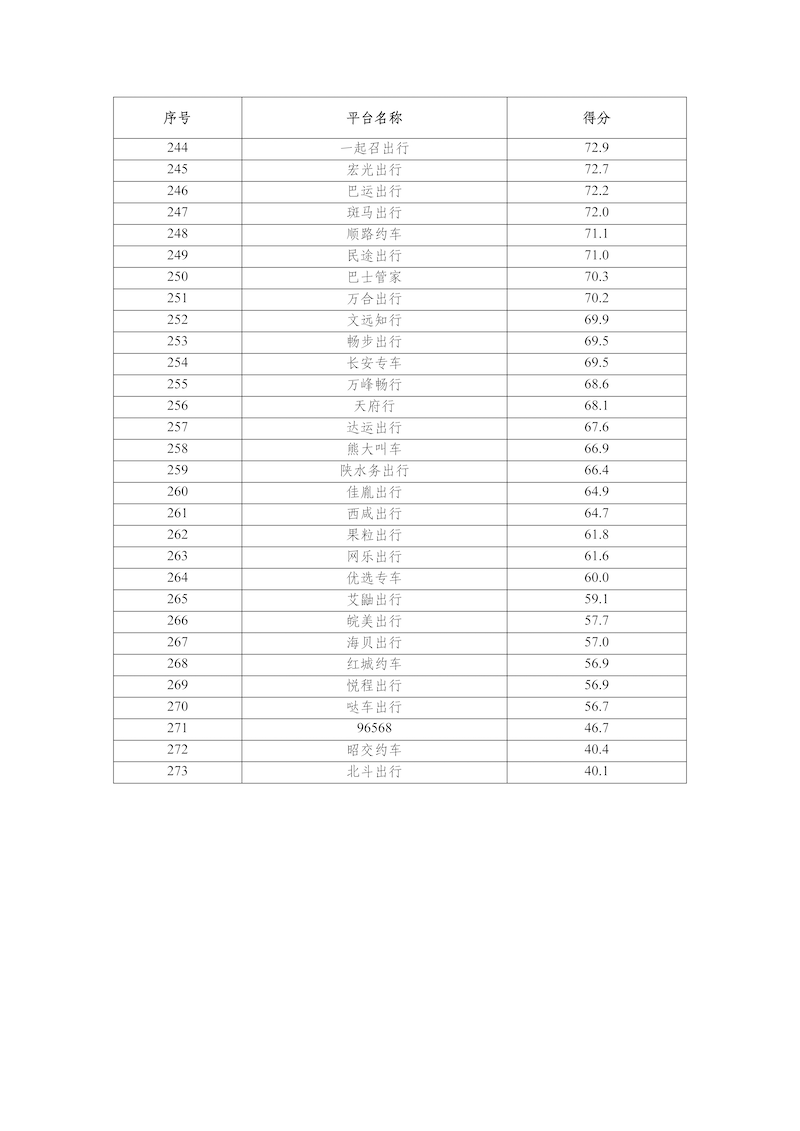 2025年,網(wǎng)絡(luò)預(yù)約出租汽車監(jiān)管信息交互平臺(tái)共收到273家網(wǎng)約車平臺(tái)公司傳輸?shù)臄?shù)據(jù),按數(shù)據(jù)完整性、規(guī)范性、及時(shí)性、真實(shí)性等指標(biāo)評分共100分計(jì)算,平均得分為88.6分,各網(wǎng)約車平臺(tái)公司數(shù)據(jù)傳輸質(zhì)量具體情況附后。
